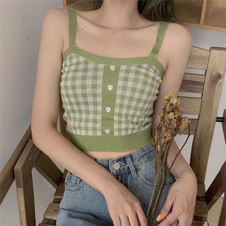 Áo hai dây cài nút thiết kế phong cách retro xinh xắn