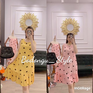 Váy lanh bầu 2 dây họa tiết trẻ trung mặc ở nhà và đi ngủ thoáng mát nhẹ tênh VL2D