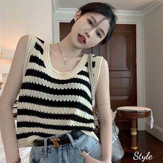 Áo nữ dệt kim sát nách phối kẻ sọc dáng rộng siêu thoải mái AN6643