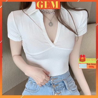 Áo croptop ba lỗ nữ kiểu hàn quốc cổ bẻ , áo polo nữ yếm sexy