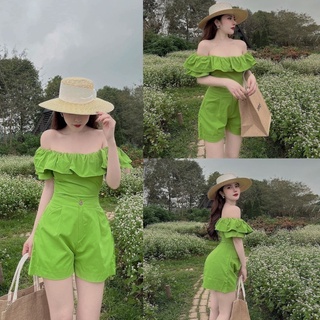 set bộ áo quần trễ vai xanh Hồng cam trắng bèo xinh xắn