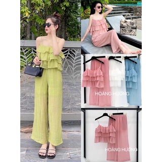 Bộ áo quần nữ 2 Dây Tầng Quần Dài vải đũi dễ thương