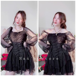 ĐẦM PHỒNG ĐÍNH ĐÁ ĐEN / TRẮNG ( ẢNH THẬT )