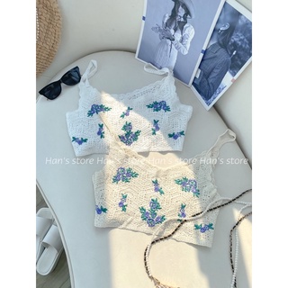 ÁO CROP LEN ĐAN HOA TÍM MÙA HÈ ( ẢNH THẬT)