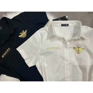 Áo sơ mi form ôm ngắn tay dập logo chữ con ong bên ngực cực xinh , chất kate lụa mềm mịn mát