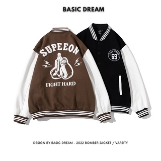 Áo khoác Bomber bóng chày SUPEEON form rộng, Áo bomber chất nỉ cao cấp dày dặn, mặc đi học, đi chơi