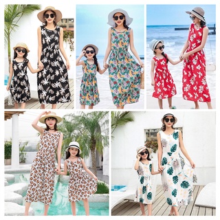 Đầm Cotton Dáng Dài Không Tay In Hoa Thời Trang Xuân Hè Dành Cho Mẹ Và Bé Size S-XL 110-160cm