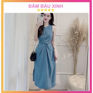 Váy bầu VD361 Đầm bầu đũi lụa trơn cổ V sát nách dáng suông Váy bầu đẹp mặc hè công sở suông xinh dự tiệc TIRA