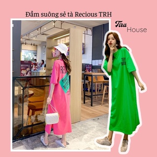 Đầm suông xẻ tà Tira House váy suông dáng dài họa tiết Recious