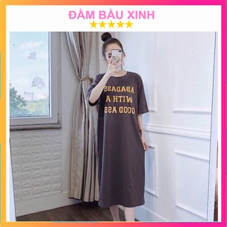 Váy bầu suông dáng dài đầm bầu suông nữ xoắn lưng họa tiết chữ Adabat Form rộng chất thun cotton Hàng VNXK