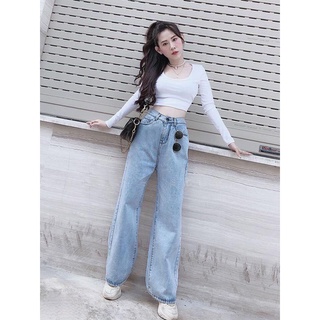 Quần baggy jean nữ lưng cao,màu xanh bạc trơn, Allen246
