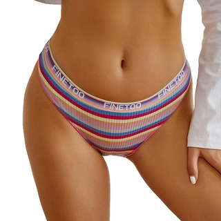 Quần lót lọt khe TAKETALK cotton kẻ sọc cầu vồng thoáng khí gợi cảm cho nữ