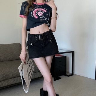 FREESHIP CHÂN VÁY BÒ ĐEN SEXY KÈM BELT HÀN QUỐC