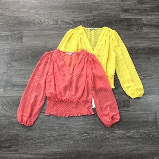Áo sơ mi nữ tay dài HAUTE MONDE voan nổi cổ V KAMI