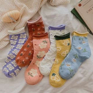 Vớ Trung Bình Họa Tiết Hoa Phong Cách Harajuku Nhật Bản Cho Nữ