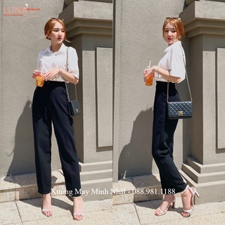 Quần baggy nữ lưng cao phối 4 cúc cực đẹp - quần tây nữ cạp cao công sở chất vải đẹp