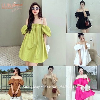 Áo trễ vai tay phồng rộng dáng giấu quần chun ngực - Áo kiểu nữ bánh bèo tay bồng hẹn hò đi học chơi biển tiệc điệu mát