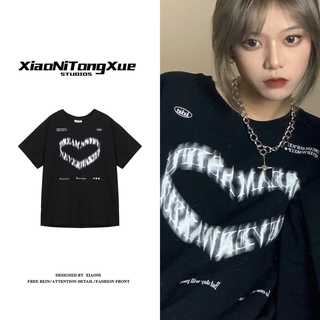 Áo Thun Tay Ngắn Cổ Tròn Dáng Rộng In Họa Tiết Phong Cách Hip Hop Hàn Quốc Thời Trang Cho Nam Và Nữ