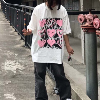 Áo Thun Tay Ngắn Dáng Rộng Có Dây Xích Hình Trái Tim Dễ Thương Có Size Lớn 1.0-150kg Cho Nam Và Nữ