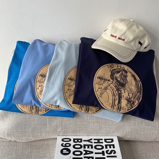 Áo Thun Tay Ngắn Cổ Tròn Dáng Rộng Phong Cách Retro Hàn Quốc