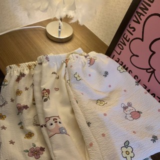 Quần Short Ngủ Mỏng Dáng Rộng In Họa Tiết Thỏ Hoạt Hình Kiểu Hàn Quốc Thời Trang Mùa Hè