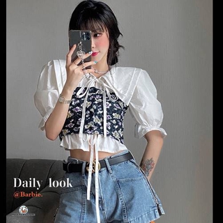 Set Áo Cổ Búp Bê Và Áo hai dây Họa Tiết Hoa Phong Cách Hàn Quốc Cho Nữ