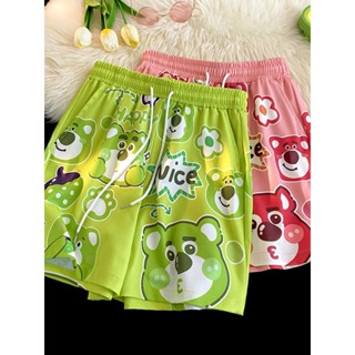 Quần Short Vải Lụa Lạnh Mỏng Nhanh Khô In Hình Gấu Dâu Tây Dễ Thương Thời Trang Mùa Hè Cho Nam