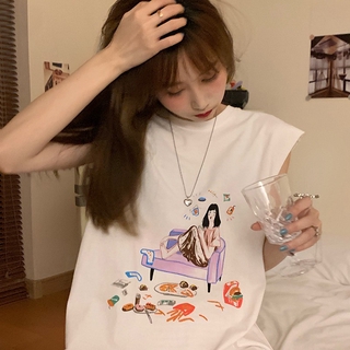 HIIXIIVI Áo Thun 100% Cotton Tay Ngắn Dáng Suông In Họa Tiết Hoạt Hình Phong Cách Hàn Quốc Thời Trang Cho Nữ