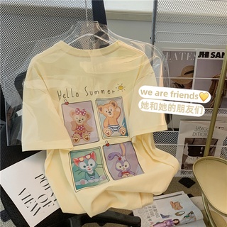Áo thun HIIXIIVI 100% cotton tay ngắn cổ tròn in hình hoạt hình phong cách Hàn Quốc 2022 thời trang mùa hè dành cho nữ