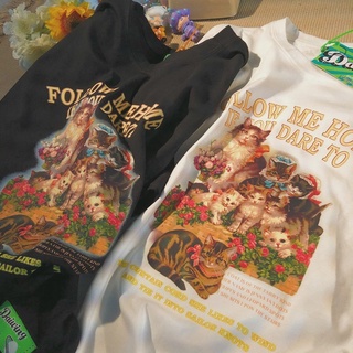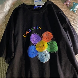 Áo thun HIIXIIVI 100% cotton tay ngắn dáng rộng họa tiết phong cách Hàn Quốc thời trang cho nữ