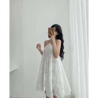 đầm tơ bông cổ yếm tay phồng dáng xoè (có ảnh thật)