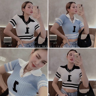 Aó Thun Len Croptop Nữ Cổ Bẻ áo chữ G