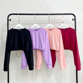 Áo CropTop Tay Dài Rút Eo Trơn Ảnh Thật