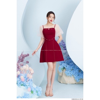 Váy thiết kế cao cấp màuđỏ tay phồng cổ vuông [ Có video + Ảnh thật ] The Shilla - B08-51B7