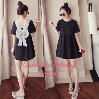 Váy bầu DÁNG XÒE KẾT HỢP NƠ sau váy dáng tiểu thư siêu xinh W126