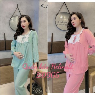 Bộ đồ bầu và sau sinh dài tay viền ren chất ĐŨI LỤA CÓ khóa ti tiện lợi cho bé ti BD941