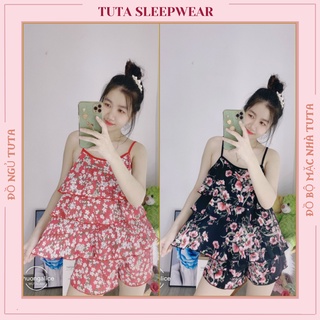 Bộ ngủ 2 dây phối ren gợi cảm TUTA đồ bộ mặc nhà sexy lưng đan chéo - dn010