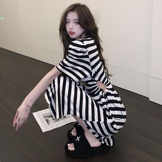 Đầm Thun Ngắn Tay Họa Tiết Sọc Ngang Thời Trang Dành Cho Nữ
