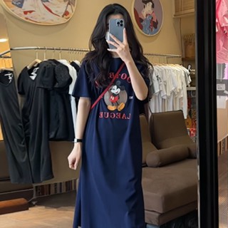 Đầm Thun Dài Qua Gối Tay Ngắn Dáng Rộng Thời Trang Mùa Hè Xinh Xắn Cho Nữ