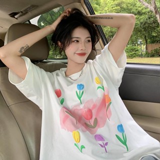 Áo Thun Nữ Ngắn Tay In Hoa Thời Trang Hàn Quốc