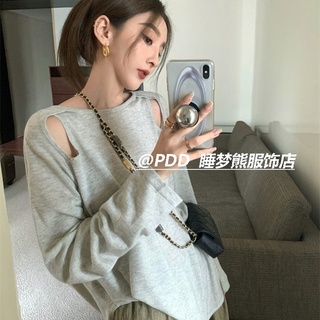 Áo Thun Dệt Kim Tay Dài Hở Vai Phong Cách Hàn Quốc Thời Trang Mùa Thu Dành Cho Nữ
