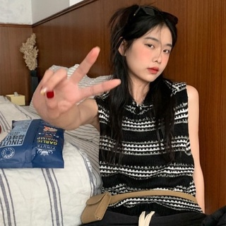 Áo Dệt Kim Không Tay Dáng Ôm Họa Tiết Kẻ Sọc Phong Cách Retro Mẫu Mới Thời Trang Mùa Hè Cho Nữ