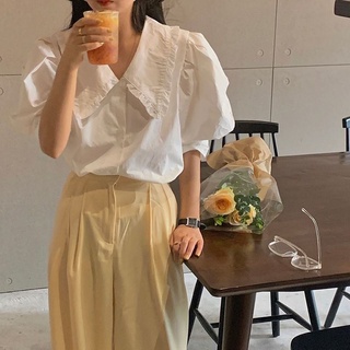 Áo sơ mi tay phồng ngắn màu trơn thời trang mùa hè phong cách Hàn Quốc