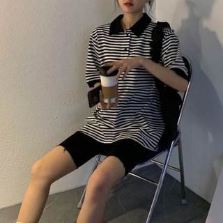 Áo Thun Tay Lửng Họa Tiết Sọc Đen Trắng Thời Trang Dành Cho Nữ