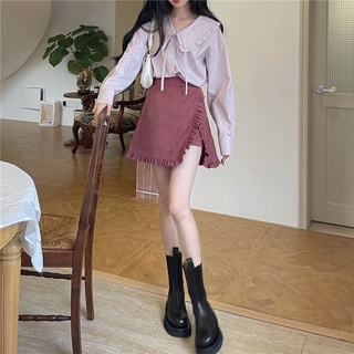 Chân Váy Chữ A Lưng Cao Phối Bèo Thời Trang Mùa Xuân 2022 Mới Cho Nữ