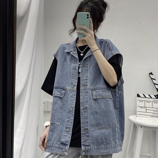 Áo Khoác Denim Không Tay Dáng Rộng Phong Cách Thời Trang Đường Phố Cho Nữ