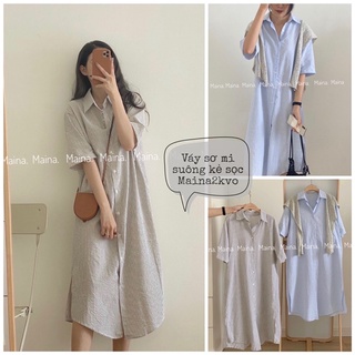 Váy polo form rộng cộc tay kẻ sọc - Đầm sơ mi dáng oversize