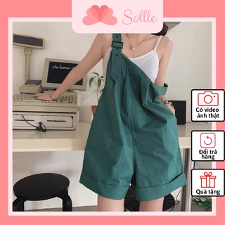 Quần short yếm kaki đùi lửng form rộng dáng suông nữ Ulzzang cute màu xanh trendy unisex Sollle