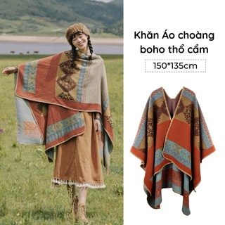 Áo choàng boho thổ cẩm 2 mặt mùa thu đông cho nữ khăn len dạ dày ấm 150*30cm - Mã AC006
