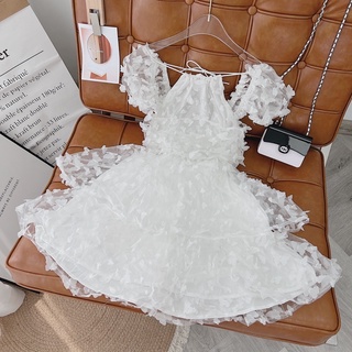 ĐẦM MIDI TRẮNG BẸT VAI NHÚN BÈO NHÍU NGỰC